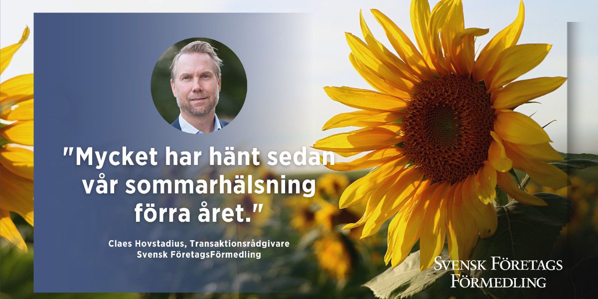 Förutsättningarna i vår bransch skilde sig markant åt från de vi arbetar under idag. Som ett trasigt piano ältar vi tuffare villkor för förvärvskrediter och branscher som är i och går mot betydligt tuffare tider. Hushållens minskade ekonomiska utrymme slår så klart väldigt hårt. Vi vill ändå lyfta att det är många branscher som flyter på som vanligt och ibland ännu bättre än tidigare. Bra och långsiktiga köpare finns det gott om och tillgången till tillgängliga bolag är fortsatt bra.